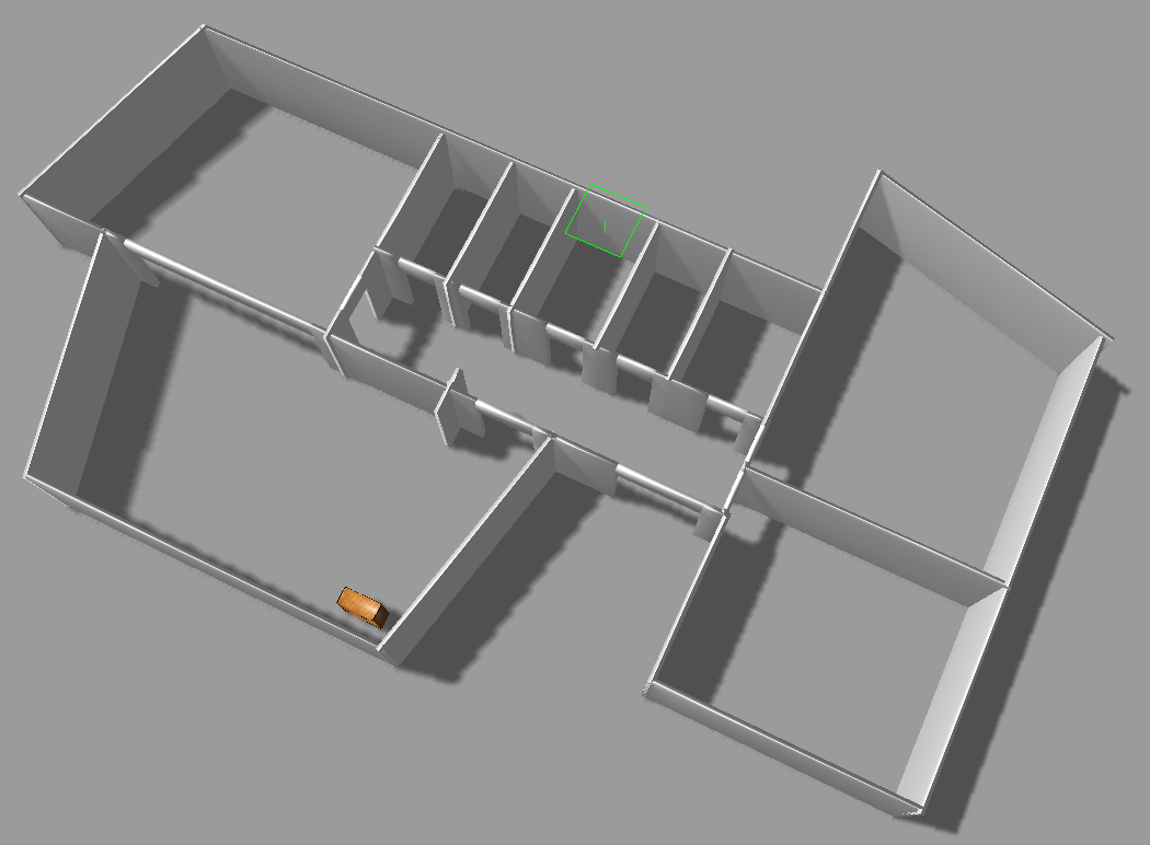 Das Einsatzgebiet wurde komplett in Gazebo entworfen und soll das Haus des Naturerlebniszentrums darstellen. Dabei wurde sich nur auf die, für die Simulation, notwendigen Dinge konzentriert.